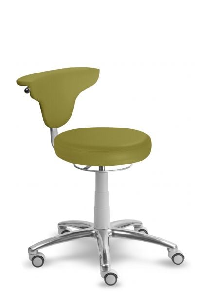 Speciální židle s opěrkou zad/lokte otočnou 360 stupňů nezávisle na pozici sedáku. Pro ordinace, laboratoře, učebny a jiná pracoviště s potřebou omyvatelnosti. Příjemná světle šedá barva plastů.