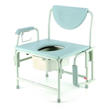 zesílený rám se zvýšenou nosností pevná výška sedu sklopné područky plastové toaletní sedátko toaletní nádoba vyjmutí nádoby dozadu