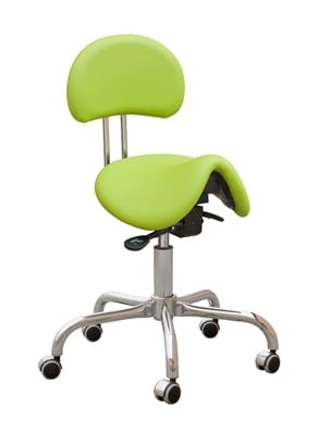 Otočná židle, výškově stavitelná, ergonomicky tvarovaný sedák a pevná opěra čalouněny zdravotnickou koženkou, kovový chromový kříž s kolečky, opěra s horizontálním a vertikálním polohováním.