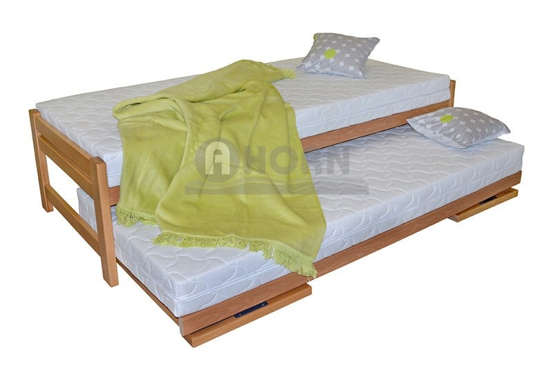 Praktické a pohodlné řešení při nedostatku místa v dětském pokoji, pro příležitostné spaní nebo na chalupu. Snadná manipulace s lehkou konstrukcí, madly a kolečky zajistí rychlé a jednoduché rozložení na komfortní dvoulůžko. Pružný lamelový rošt s 28 lamelami vyřeší pohodlné spaní bez kompromisu. Masivní buková konstrukce potvrzuje vysokou kvalitu a odolnost. Do postele jsou vhodné matrace z polyuretanové (PUR) nebo studené (HR) pěny s max. výškou 18 cm. Výška bočnice lůžka 41 cm.