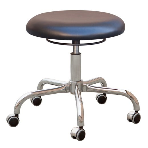 Otočná židle, výškově stavitelná, čalouněna zdravotnickou koženkou, kovový chromový kříž s kolečky, nastavení výšky pomocí kruhu