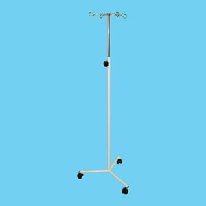 Infuzní lakovaný stojan na tříramenném podstavci s výškově nastavitelným nerezovým držákem se čtyřmi plastovými háčky každý na zatížení 2 kg. Stojan je opatřen třemi plastovými kolečky Ø 50 mm. (1x bržděné a 2x nebržděné) Rozměry : 550 x v-1200-2050 mm