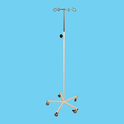Infuzní lakovaný stojan na pětiramenném podstavci s výškově nastavitelným nerezovým držákem se čtyřmi plastovými háčky každý na zatížení na 2 kg. Na přání lze dodat s háčky na zatížení 6 kg. Stojan je opatřen pěti plastovými kolečky Ø 50 mm (2x bržděné a 3x nebržděné) Rozměry : 550 x v-1200-2050 mm