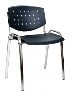 jednací židle s plastovým perforovaným sedákem a opěrákem ve 6 barvách ocelový rám chromovaný (C) oválný profil 15x30 mm stohovatelnost 10 kusů volitelné područky BR 05 nebo BR 15 s odklápěcím stolkem na pravé straně možnost spojování do řad pomocí plastových spojníků, pevných nebo nastavitelných nosnost 120 kg