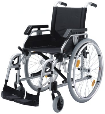 potah sedadla a opěradla vinyl, podnožky výklopné dovnitř i ven, stupačky úhlově přestavitelné a zajistitelné, adaptér, stop brzda pro obsluhu uživatelem