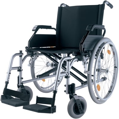 potah sedadla a opěradla vinyl, podnožky výklopné dovnitř i ven, stupačky úhlově přestavitelné a zajistitelné, adaptér, stop brzda pro obsluhu uživatelem, zesílená konstrukce