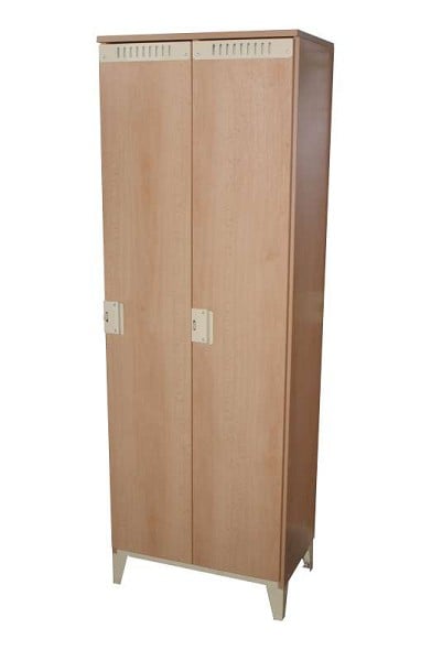 Uzamykání je buď na visací zámek (dvířka jsou opatřena kováním) nebo na nábytkový zámek se dvěma klíči, doplněný úchytkou ve stříbrné barvě. (+350,-Kč)