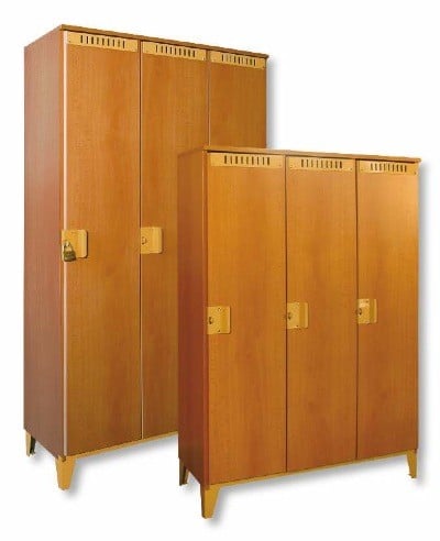 Šatní skříň má 2 nebo 3 oddíly se samostatnými dvířky.
