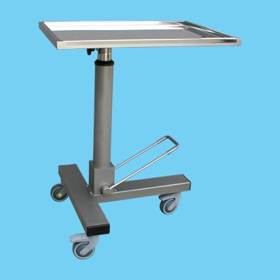 Stolek nástrojový nerezový je opatřen hydraulickým systémem pro plynulé polohování antistatickým nožním pedálem. Horní nerezová zapuštěná deska má možnost otáčení kolem osy o 360º se zajištěním aretačním šroubem. Základna je opatřena jedním nebrzděným a dvěma brzděnými antistatickými otočnými kolečky Ø 100 mm. Možnost úpravy plat matováním pro laserová pracoviště.