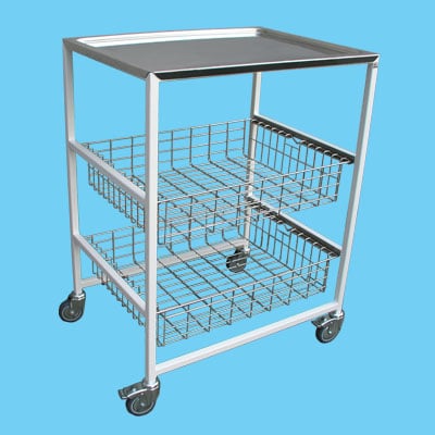 Pojízdný stolek je vyroben z nerezových profilů. Horní odkládací plochu tvoří nerezové lisované plato se zaoblenými rohy a ve střední a spodní části jsou umístěny výsuvné nerezové koše. Stolek je opatřen dvěma brzděnými a dvěma nebrzděnými kolečky ø 75 mm. Slouží k odkládání a rozvozu zdravotnického materiálu. Rozměry : d- 640 x š -480 x v- 850 mm