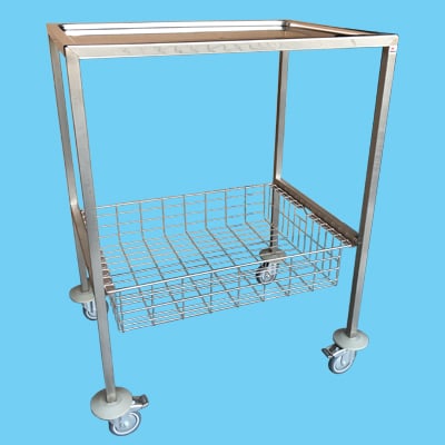 Pojízdný stolek nástrojový nerezový. Odkládací plochu tvoří nerezové plato, přičemž horní plato je lisované se zaoblenými rohy. U provedení SNN-640K je ve spodní části umístěn výsuvný nerezový vyjímatelný koš hl. 100 mm. Slouží k odkládání zdravotnického materiálu. Stolek je opatřen dvěma brzděnými a dvěma nebrzděnými otočnými kolečky Ø 75 mm. V případě požadavku je možné stolek vybavit antistatickými nerezovými kolečky a spodním zapuštěným platem. Možnost úpravy plat matováním pro laserová pracoviště.