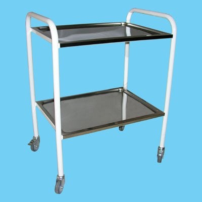 Pojízdný nástrojový stolek je vyroben z ocelových profilů, povrchově upravených práškovou polyesterovou barvou a v horní části je opatřen dvěma madly. Odkládací plochy tvoří horní lisované plato a spodní rovné plato. Stolek je opatřen dvěma brzděnými a dvěma nebrzděnými otočnými kolečky Ø 75 mm.