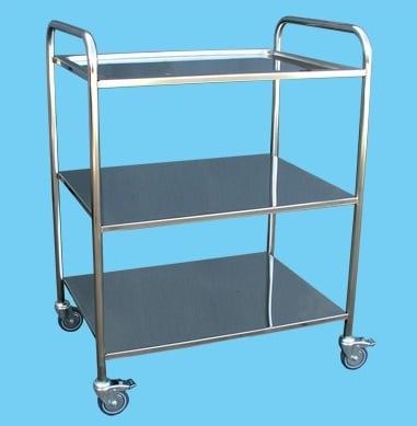 Pojízdný nástrojový stolek je vyroben z nerezových profilů a v horní části je opatřen dvěma madly.