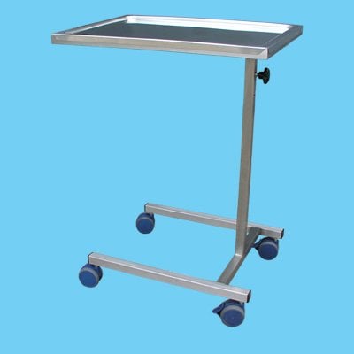 Výškově nastavitelný instrumentační stolek nerezový s vrchní nerezovou lisovanou deskou se zaoblenými rohy. Je opatřen dvěma brzděnými a dvěma nebrzděnými otočnými plastovými kolečky Ø 75 mm. Je určen pro odkládání chirurgických nástrojů a zdravotnického materiálu. V případě požadavku je možné stolek vybavit antistatickými kolečky. Možnost úpravy plat matováním pro laserová pracoviště.