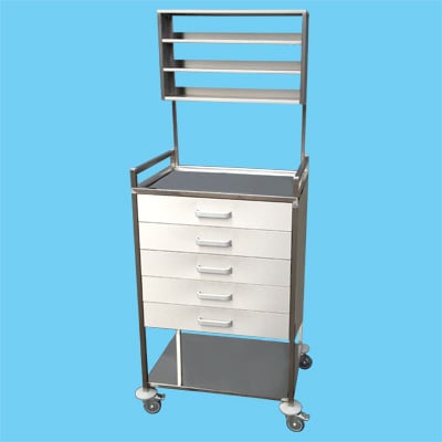 Stolek je vyroben z nerezových profilů s vrchním nerezovým lisovaným platem s ohrádkou a spodním zapuštěným odkládacím platem . Je vybaven pěti zásuvkami a galerkou pro zakládání šicího materiálu. Na pravé spodní straně je zavěšen půlkulatý plastový koš. Stolek je opatřen dvěma brzděnými a dvěma nebrzděnými kolečky Ø 75 mm.