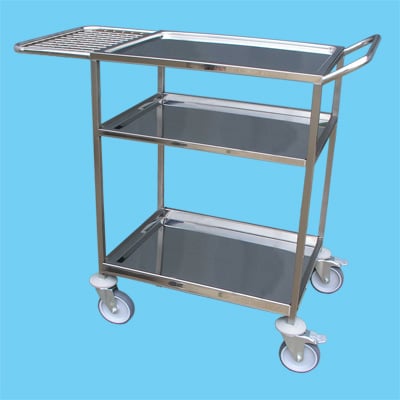 Víceúčelový vozík se třemi odkládacími platy je určen pro rozvoz zdravotnického materiálu . Na přední straně je opatřen odkládací mřížkou pro možnost zavěšení infusí nebo drátěného koše. Stolek je opatřen dvěma brzděnými a dvěma nebrzděnými kolečky Ø 125 mm. Rozměry : d-1000 x š-480 x v-900 mm. Rozměry plata : d-640 x š-480 mm.